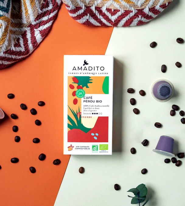 Les capsules Pérou Bio d’Amadito sont faites d’un café moulu provenant du Pérou et d’une agriculture biologique. Il s’agit de capsules faites à 100% de matières d’origine naturelle et végétale. Ceci vous permet de les composter à la maison et de vous inscrire dans une démarche écoresponsable et zéro déchet !