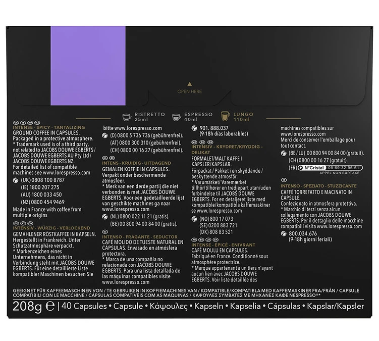 Découvrez les capsules Lungo Profondo de l’Or Espresso compatibles machines à capsules Nespresso®. Ces capsules renferment un café riche en arômes. Des notes épicées, d’amandes grillées et de réglisse se révèlent à la dégusation. Conditionnement : boite de 40 capsules.