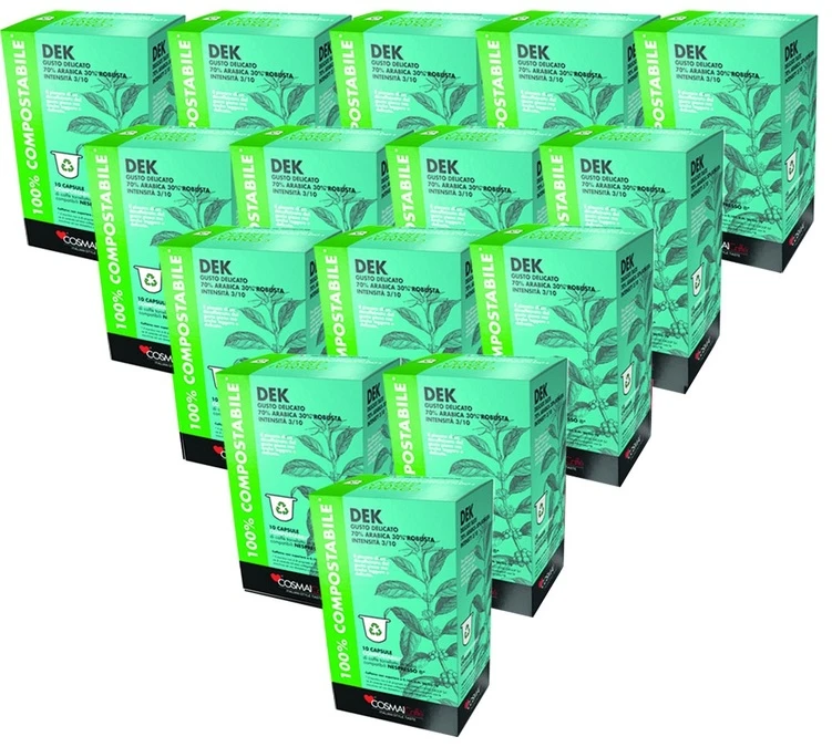 Ces 500 capsules Decaffeinato proviennent de la marque Cosmaï Caffé . Recevez 50 boîtes de 10 capsules compatibles Nespresso® d’une intensité douce. Laissez-vous tenter par la qualité de ces capsules Cosmaï Caffé ! Livraison gratuite.