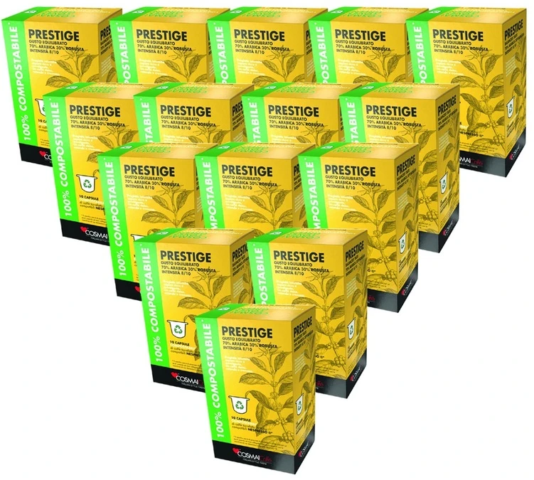 Ces 500 capsules Prestige proviennent de la marque Cosmaï Caffé . Recevez 50 boîtes de 10 capsules compatibles Nespresso® d’une intensité équilibrée à la saveur gourmande . Livraison gratuite.