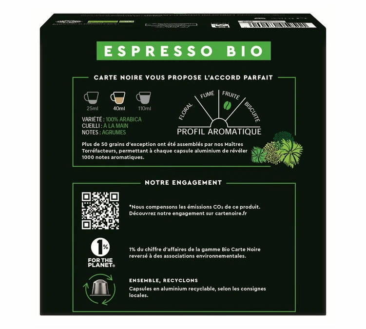 60 Capsules compatibles Nespresso® – Espresso BIO – CARTE NOIRE