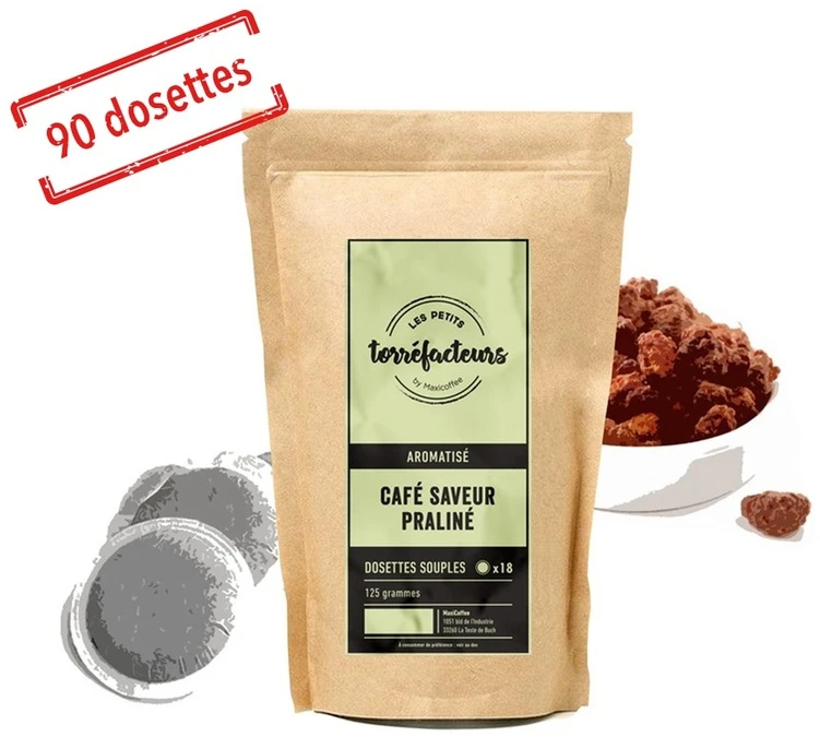 Dégustez ce café aromatisé praliné avec ces dosettes souples compatibles avec les machines Senseo et les machines expresso manuelles acceptant les dosettes souples. Aromatisation artificielle. Conditionnement : 5 sachets de 18 dosettes souples non suremballées en sachet kraft.