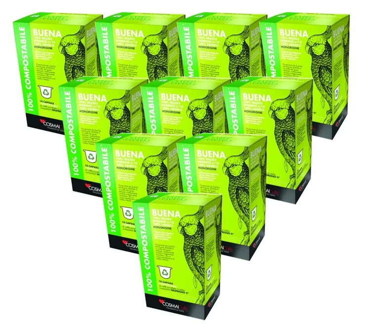 Découvrez ces capsules compatibles Nespresso® Brésil Buena de la marque italienne COSMAI . Ce café 100% Arabica d’une intensité équilibrée vous offrira des notes légèrement gourmandes (notamment d’amande). Conditionnement : 100 capsules (10×10 capsules).