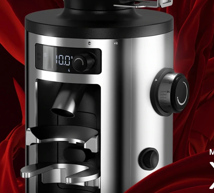 Ce moulin X54 permet de passer de l’expresso au filtre très facilement, grâce à son interface amovible : en appuyant sur un bouton, le panneau de base (utilisé pour moudre dans le gobelet doseur en inox inclus) se retire pour pouvoir insérer le panneau avec fourches pour un porte-filtre.
