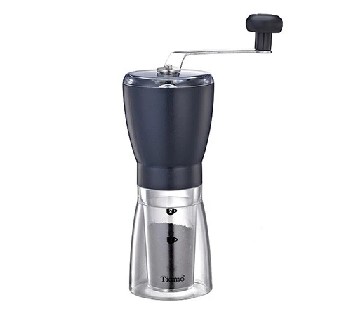 Un moulin manuel slim pour moudre jusqu’à 24 grammes de café de la marque Tiamo.