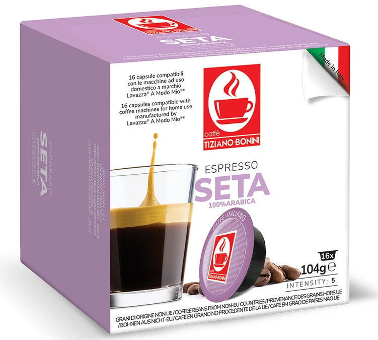 Ces capsules 100% Arabica Seta pour Lavazza a Modo Mio ® vous offriront une belle crema en tasse et des notes gourmandes d’amande et de cacao (de légères notes florales peuvent se faire ressentir en fin de bouche).