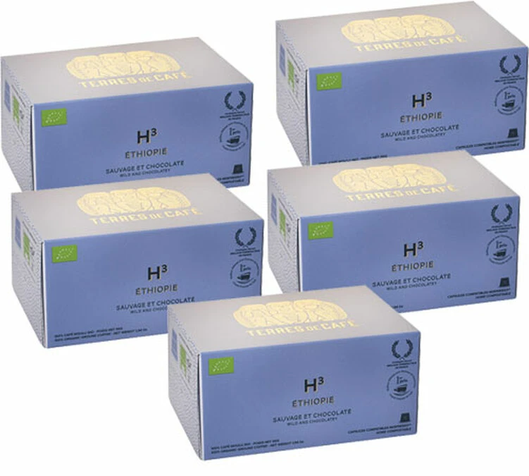 Lot 50 Capsules compatibles Nespresso® Éthiopie H3 Bio et Compostables 5×10 – Terres de Café