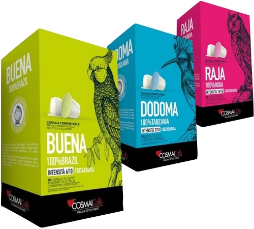 Découvrez les capsules compatibles Nespresso® Pure-Origine de la marque italienne COSMAI avec ce pack découverte de 30 capsules compatibles Nespresso® . Tanzanie, Brésil, Inde, faites voyager vos papilles.
