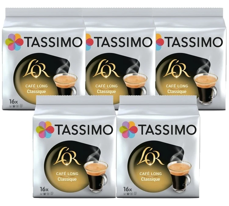 Les dosettes Tassimo Café Long Classique signé L’Or offrent en tasse un café équilibré, aux arômes développés et à la mousse onctueuse. Conditionnement : 5 sachets de 16 T-Discs.